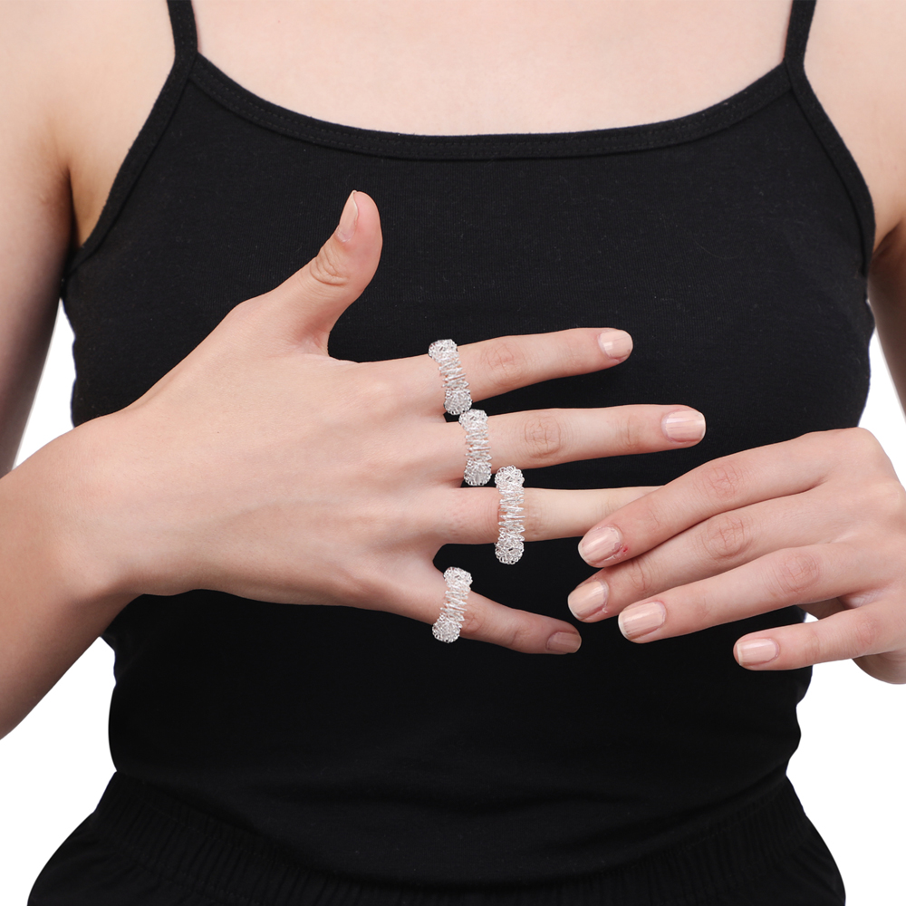 Massage with this magical metal acupressure ring helps to improve blood circulation bringing about a balance to the body. It helps to reduce numbness and stiffness of hands because of long-term writing or typing. Good for those who are a regular PC user, console player, or play the guitar.