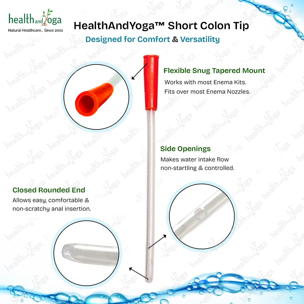 People face a lot of discomfort using traditional enema colon tips as they are big and a bit hard at their end. To have a comfortable enema experience, enema tips must be soft at their end so that they stay easy to hold for a bit longer. We at HealthAndYoga, continuously work on providing a relaxing enema experience to the people worldwide. We have introduced these short and flexible colon tips. They have round ends which can be easily inserted and also maintain the blocking. They have all the properties of an ideal colon tip.