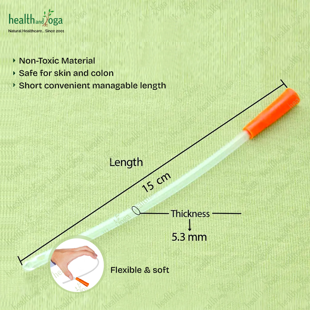 They are shorter (15 cms) comparatively. They come in size varying from 12 Fr (5.3mm) to 18 Fr (5.94mm). They can be easily mounted over the enema nozzle. Use each for single time only and dispose.